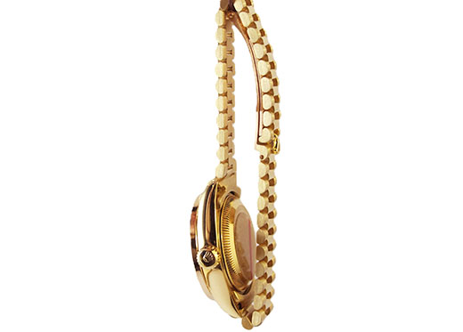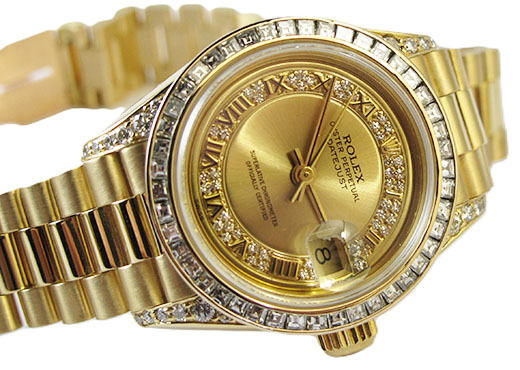 錶徑:26mm*原裝18K金蠔式錶殼*水晶玻璃鏡面*精鑲方形鑽石錶圈錶耳*旋入式底蓋