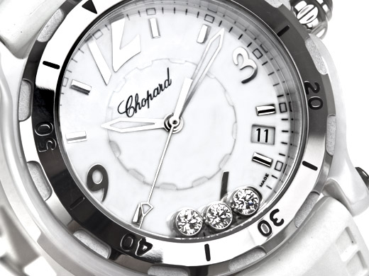 蕭邦 Happy Ceramic 系列不鏽鋼/白陶大型腕錶